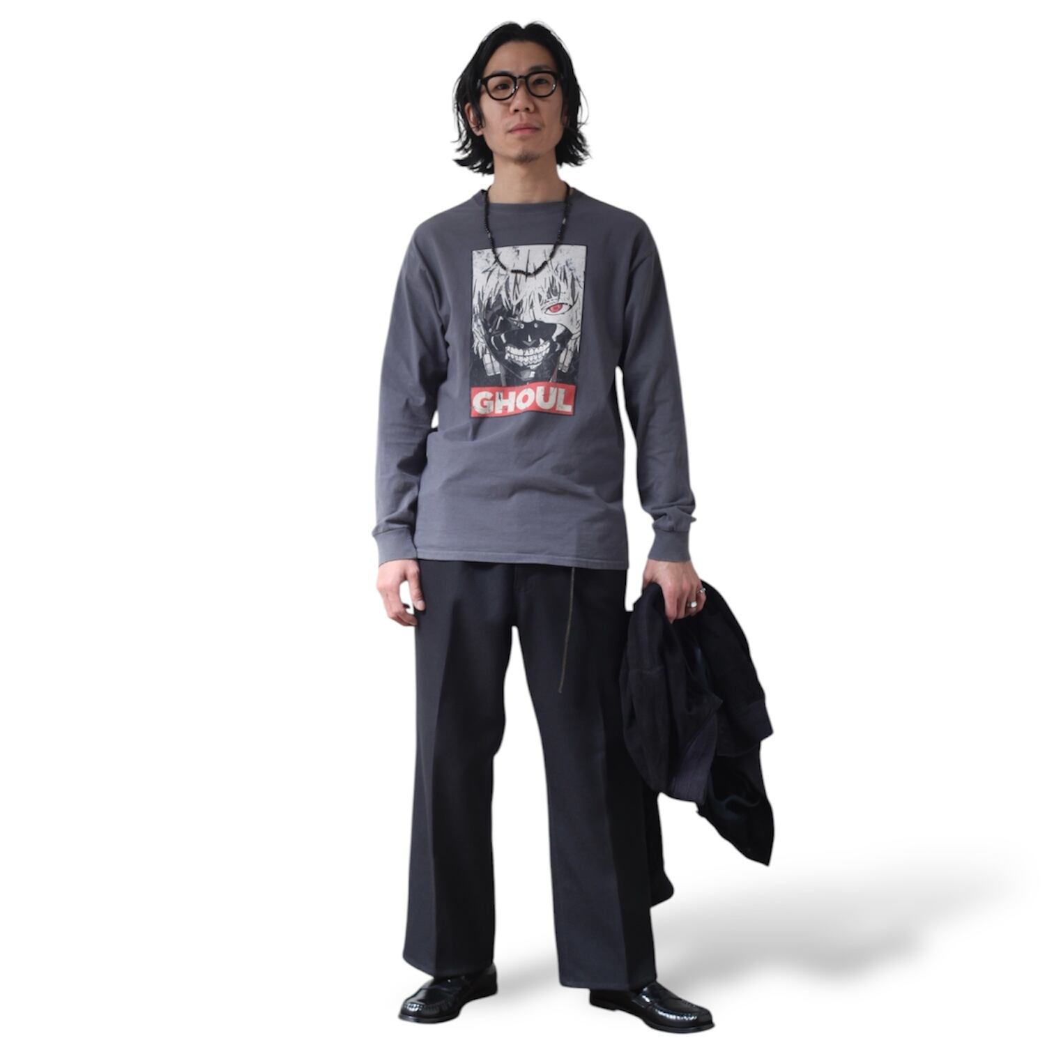 2010s 東京喰種 GHOUL 金木研 プリント ロングスリーブ Tシャツ フルーツ オブ ザ ルーム グレー M 当時物