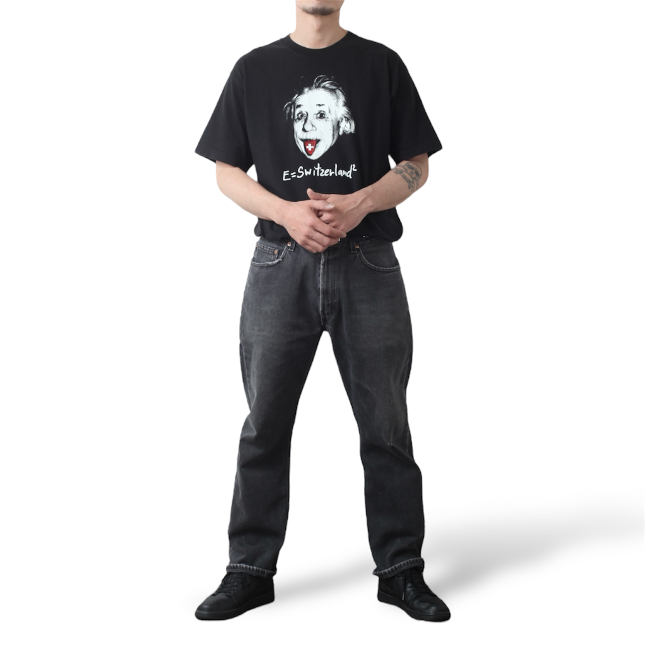 古着 アルベルト アインシュタイン Albert Einstein 偉人 フェイス フロント プリント Tシャツ カットソー 半袖 ショートスリーブ クルーネック トップス コットン ブラック 黒 メンズ L 大きい サイズ ビッグ シルエット オーバー ヴィンテージ ビンテージ オールド レギュラー 中古 当時物 Y2K