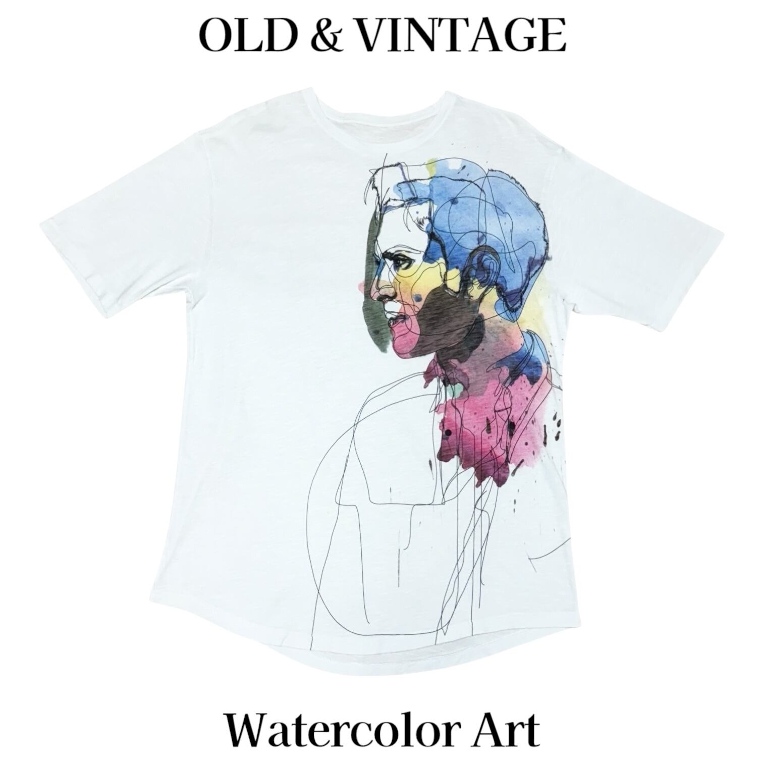 古着 水彩画 アート Tシャツ ホワイト XL 当時物 ヴィンテージ ビンテージ 絵画
