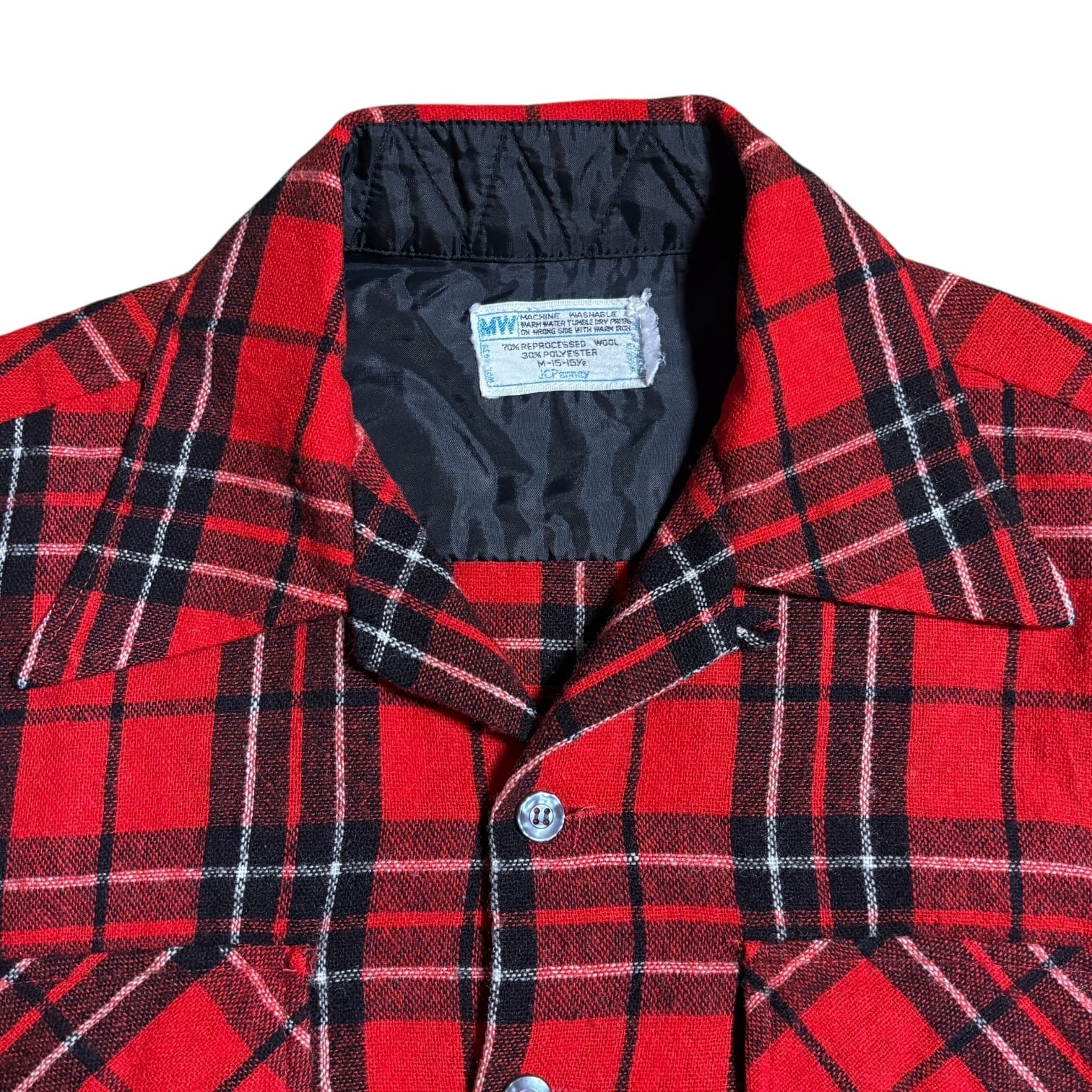 古着 70s JCPenney ジェーシーペニー ウール タータン チェック オープンカラー シャツ レッド M 当時物 ヴィンテージ ビンテージ 70年代 開襟