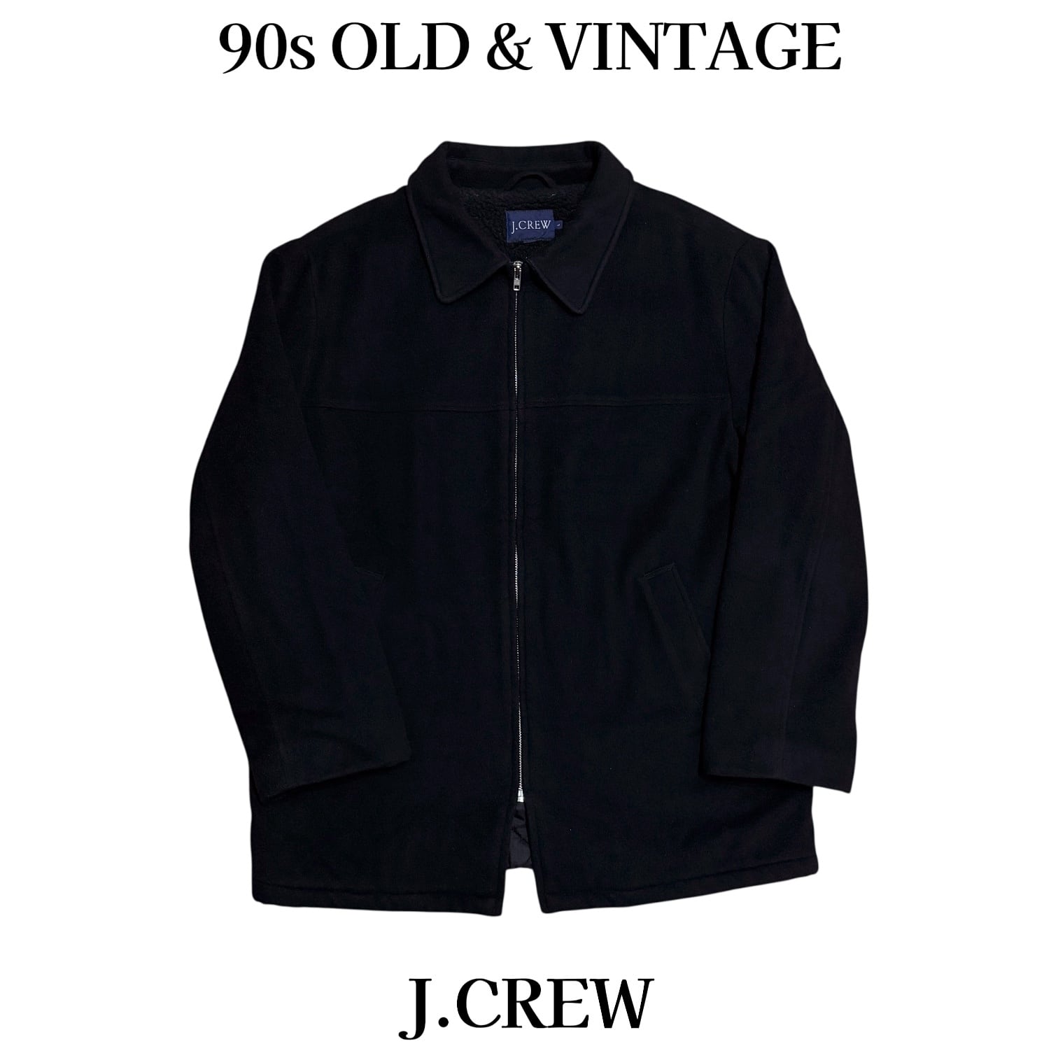 古着 90s J.CREW Zipup Wool Melton Jacket ジェイクルー ジップアップ ウール メルトン ジャケット ブラック L 紺タグ 当時物 ヴィンテージ ビンテージ 90年代