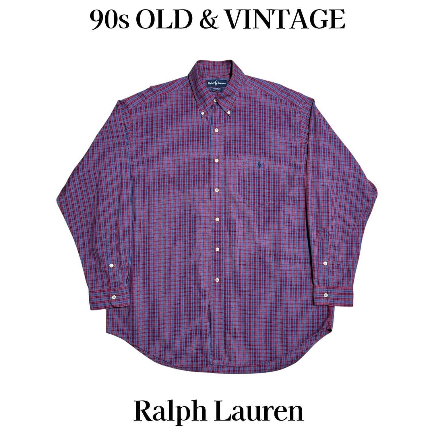 古着 90s Ralph Lauren BIG SHIRT Oxford Check Shirt ラルフローレン ビッグ シャツ オックスフォード チェック L 当時物 ヴィンテージ ビンテージ 90年代