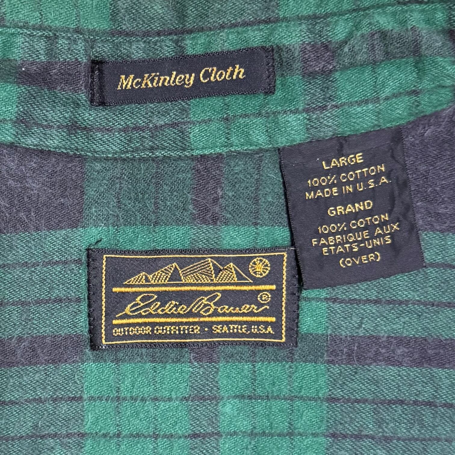 古着 80s Eddie Bauer McKinley Cloth Flannel Shirt made in USA エディーバウアー マッキンリークロス フランネル シャツ アメリカ製 チェック グリーン L 当時物 ヴィンテージ ビンテージ 80年代