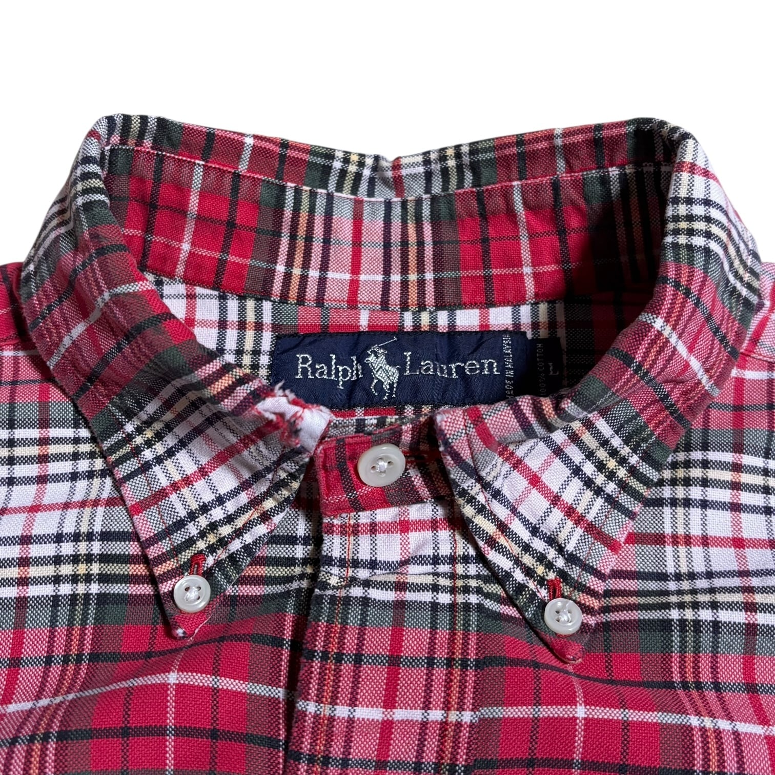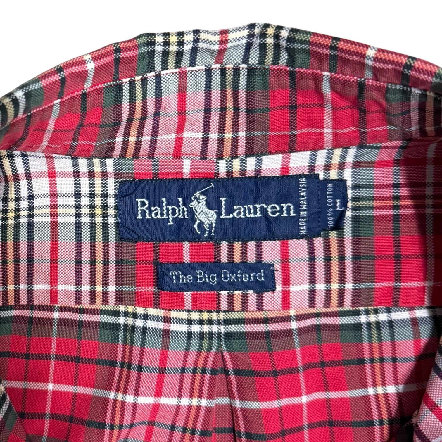 古着 90s Ralph Lauren The Big Oxford Check Shirt ラルフローレン ザ ビッグ オックスフォード チェック シャツ L 当時物 ヴィンテージ ビンテージ 90年代 裾ポニー