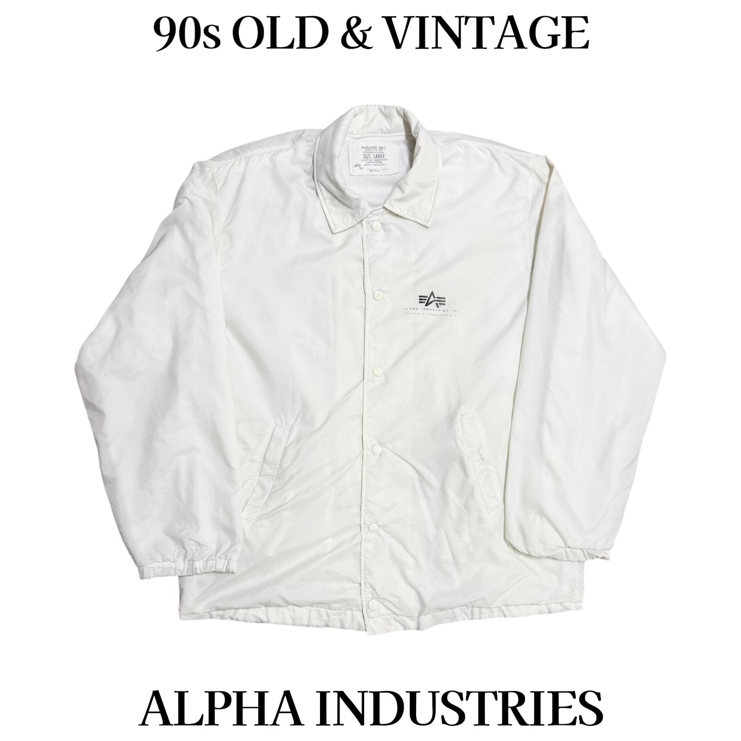 古着 90s ALPHA INDUSTRIES Nylon Coach Jacket made in USA アルファインダストリーズ ナイロン コーチ ジャケット アメリカ製 ホワイト L 当時物 ヴィンテージ ビンテージ 90年代