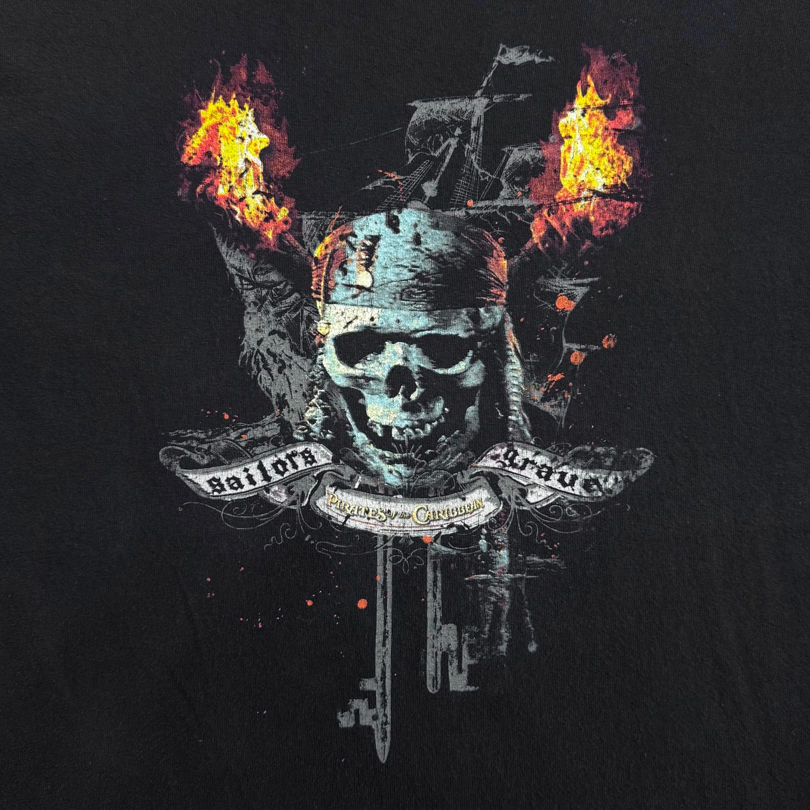 古着 00s パイレーツオブカリビアン スカル ジャックスパロウ ムービー Tシャツ ブラック XL TENNESSEE RIVER 当時物 映画T