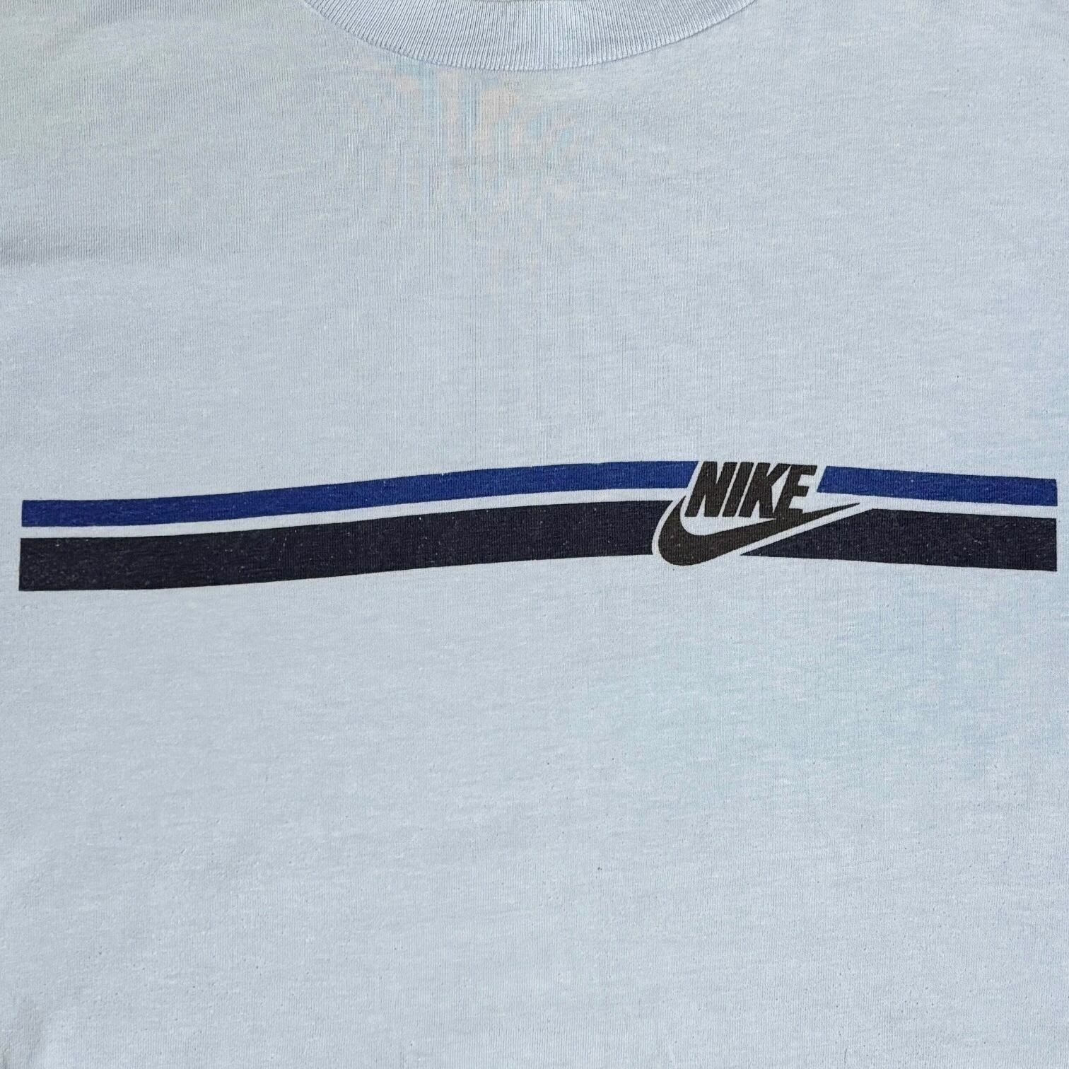 古着 70s-80s ナイキ スウォッシュ ロゴ Tシャツ ブルー L 当時物 ヴィンテージ オレンジタグ