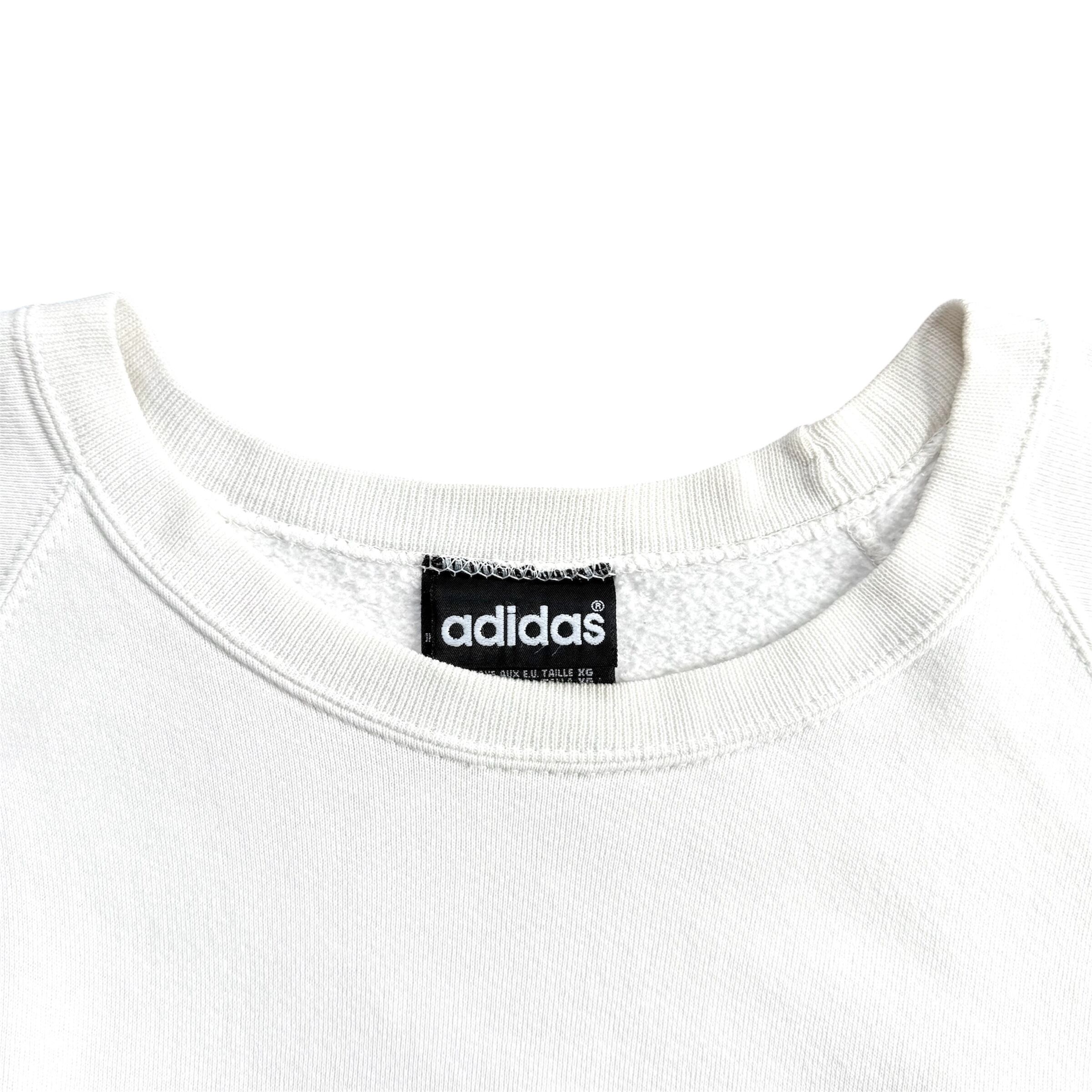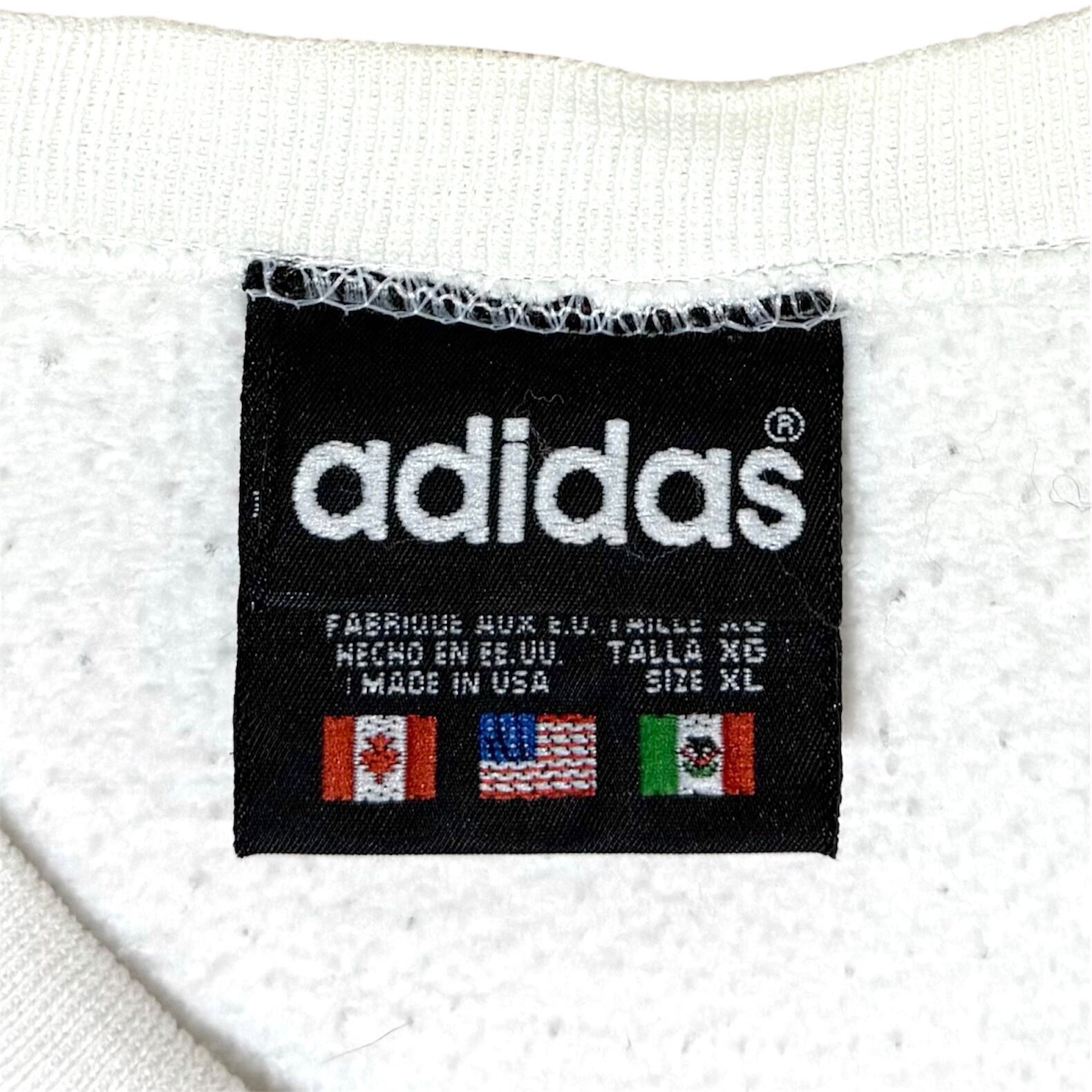 古着 80s-90s アディダス トレフォイル 刺繍 ロゴ スウェット トレーナー アメリカ製 ホワイト XL 万国旗タグ 当時物 ヴィンテージ USA
