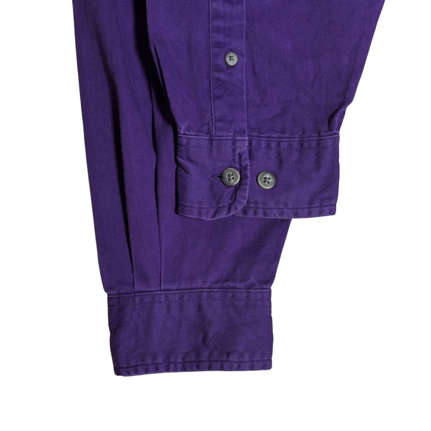 古着 90s エディーバウアー コットン 無地 ボタンダウン シャツ パープル 白タグ M
