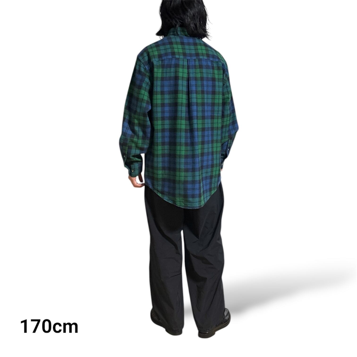 古着 90s ランズエンド コットン フランネル ブラックウォッチ タータン チェック シャツ M