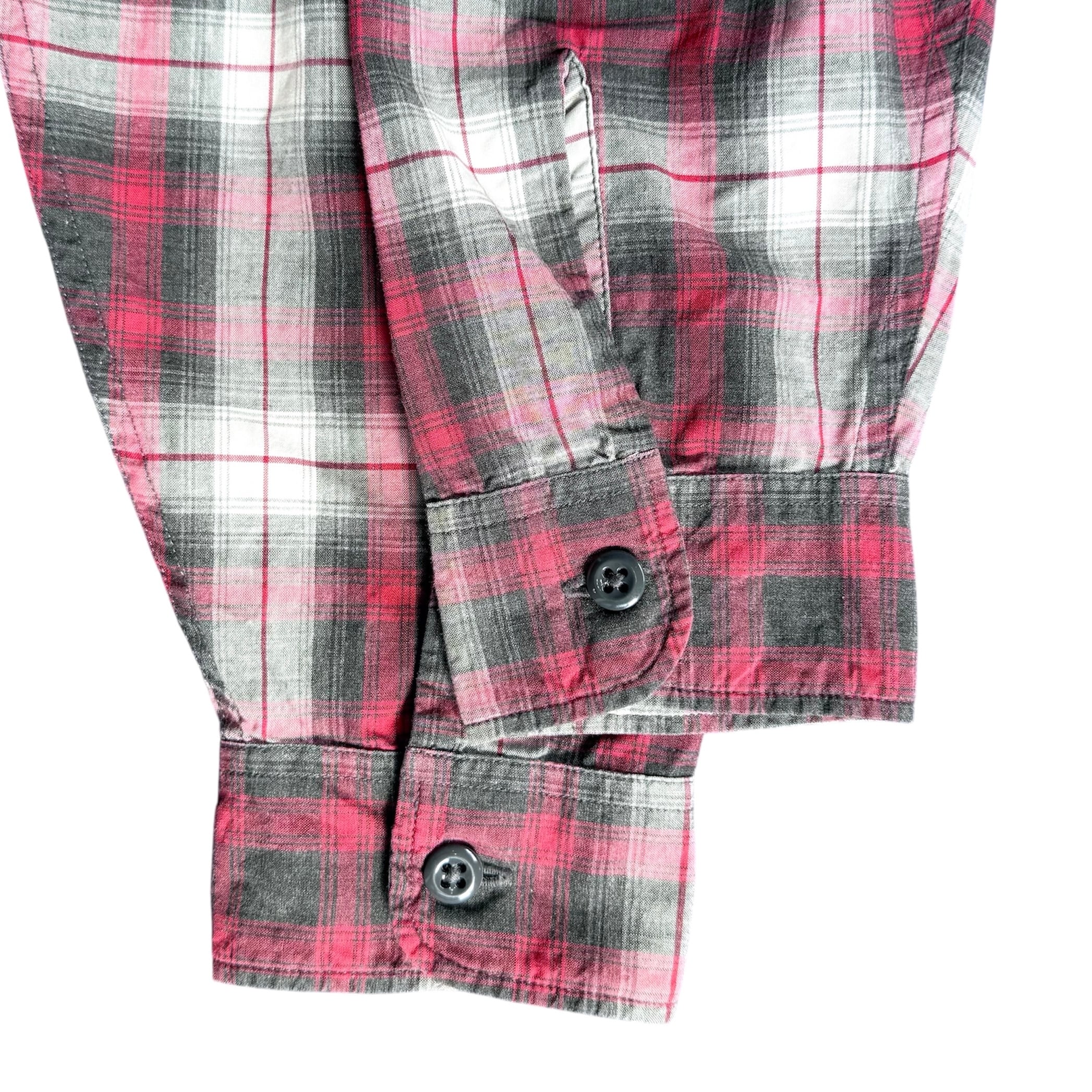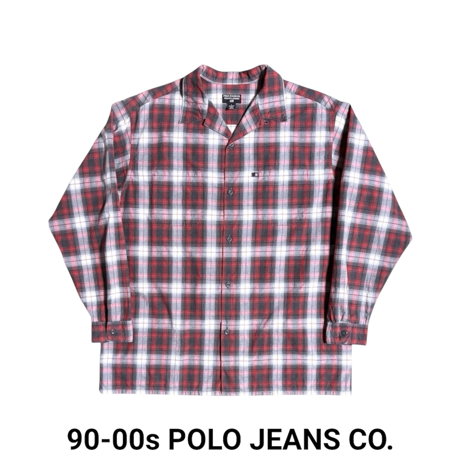 古着 90s-00s ポロ ジーンズ オープンカラー オンブレ チェック シャツ レッド L 開襟 プレイド シャドー