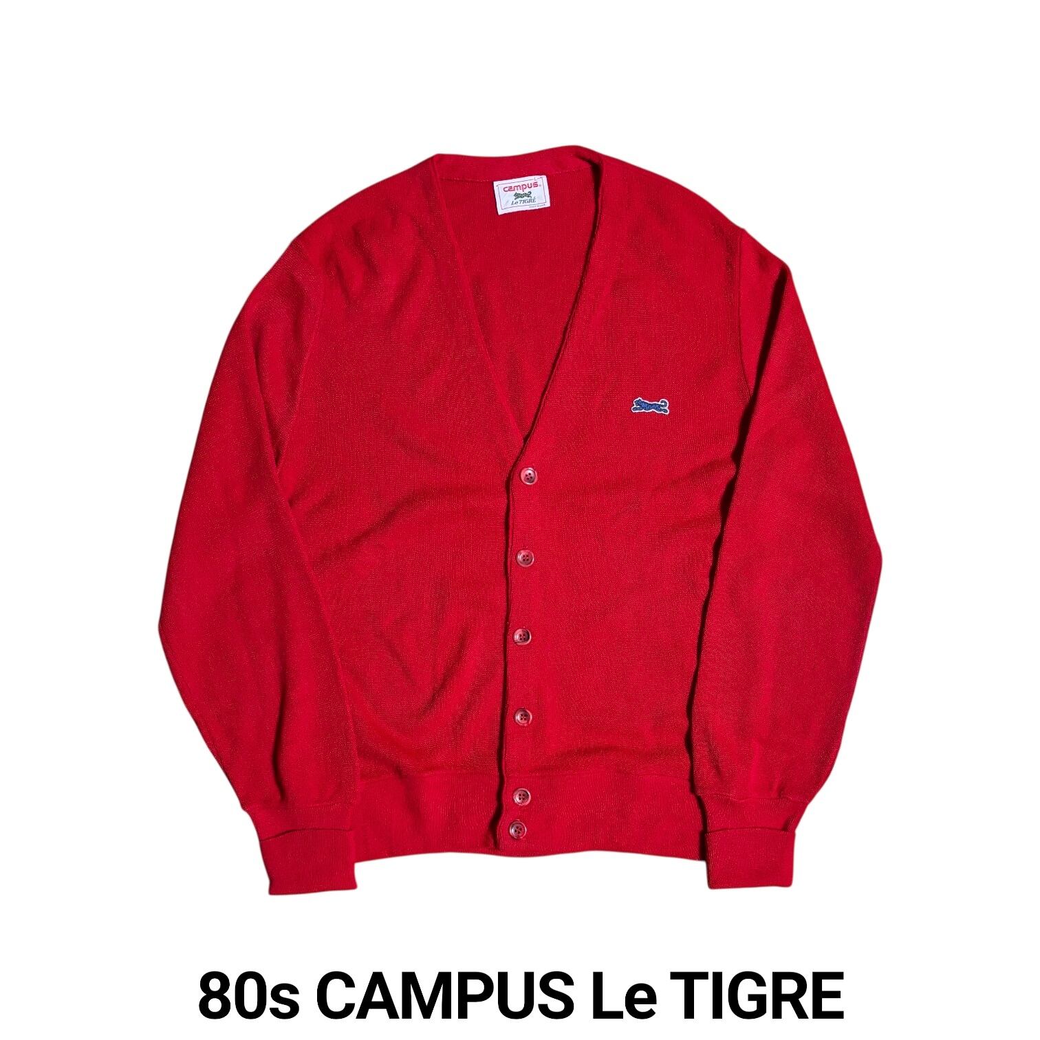 古着 80s キャンパス ル ティグレ アクリル カーディガン アメリカ製 レッド L 当時物 ヴィンテージ