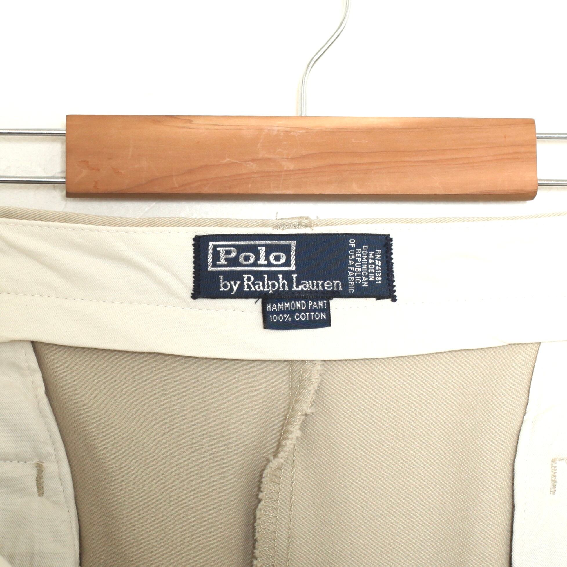 古着 90年代 90s ポロ バイ ラルフローレン POLO by Ralph Lauren ハモンド パンツ HAMMOND PANT ポロチノ チノパン 綿パン トラウザー ボトムス 無地 ソリッド 2タック ツータック アウトプリーツ テーパード コットン ベージュ カーキ メンズ W36 L30 大きい サイズ ビッグ シルエット オーバー ヴィンテージ ビンテージ オールド レギュラー 中古