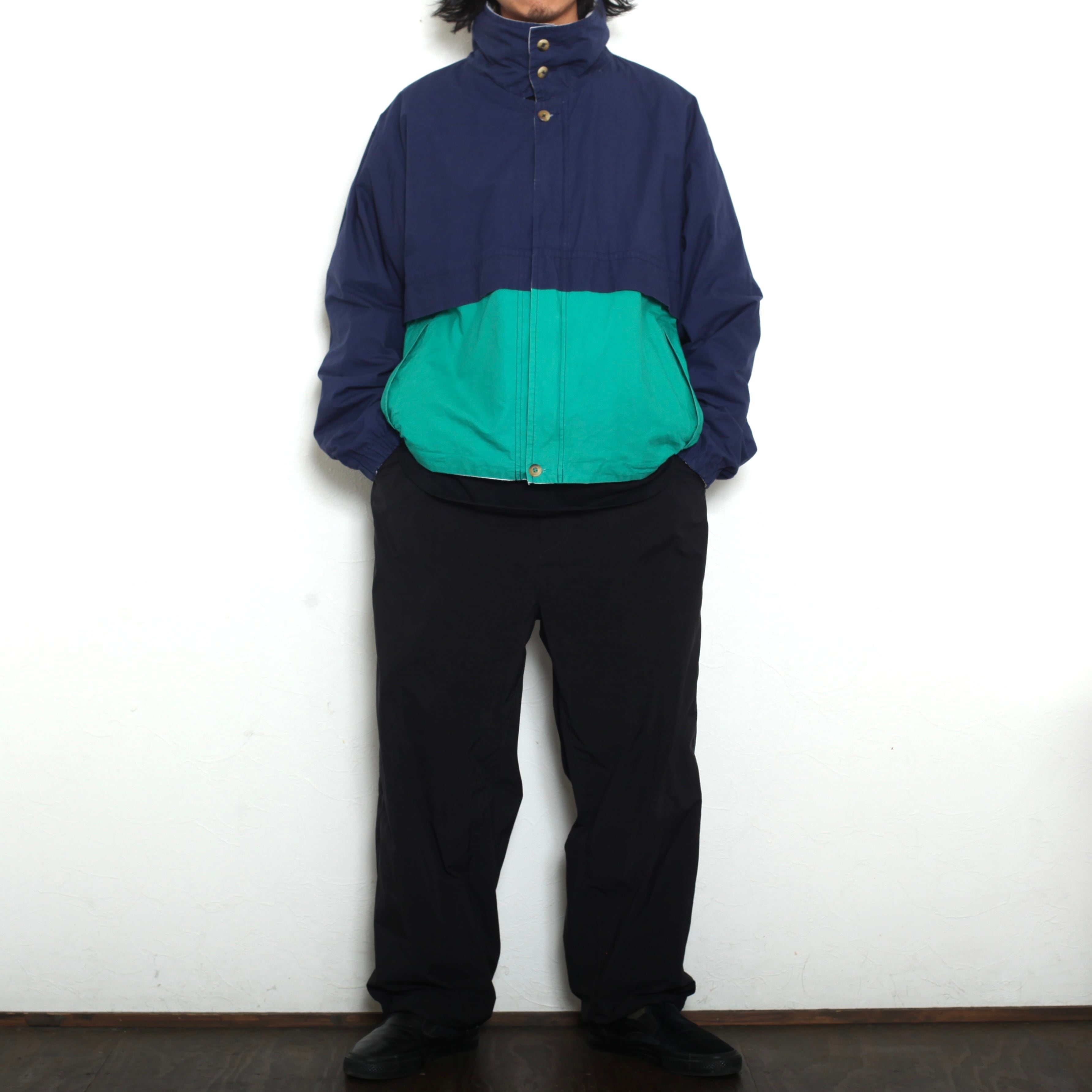 古着 90年代 90s ノーティカ NAUTICA セーリング ジャケット ブルゾン アウター リバーシブル無地 ソリッド フード フーディ パーカー 内蔵 スタンドカラー 立ち襟 ハイネック コットン 紺 緑 白 ネイビー グリーン ホワイトメンズ L 大きい ビッグ オーバー ルーズ サイズ シルエット ヴィンテージ ビンテージ オールド レギュラー 中古