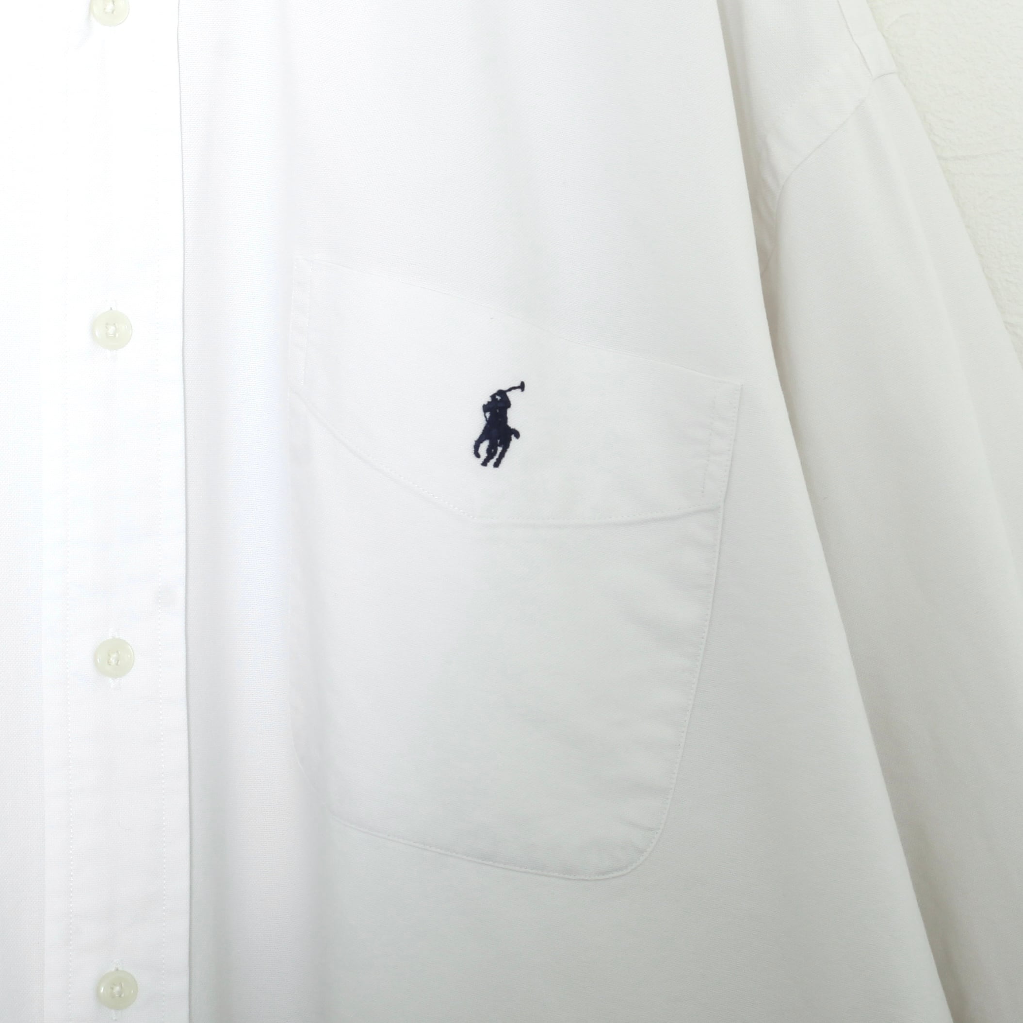 古着 90年代 90s ラルフローレン Ralph Lauren ビッグ シャツ BIG SHIRT オックスフォード 長袖 無地 ソリッド ブラウス コットン ボタンダウン ワンポイント ロゴ ポニー 刺繍 トップス 白 ホワイト メンズ L オーバー サイズ ビッグ シルエット 大きい ルーズ ヴィンテージ ビンテージ オールド レギュラー 中古