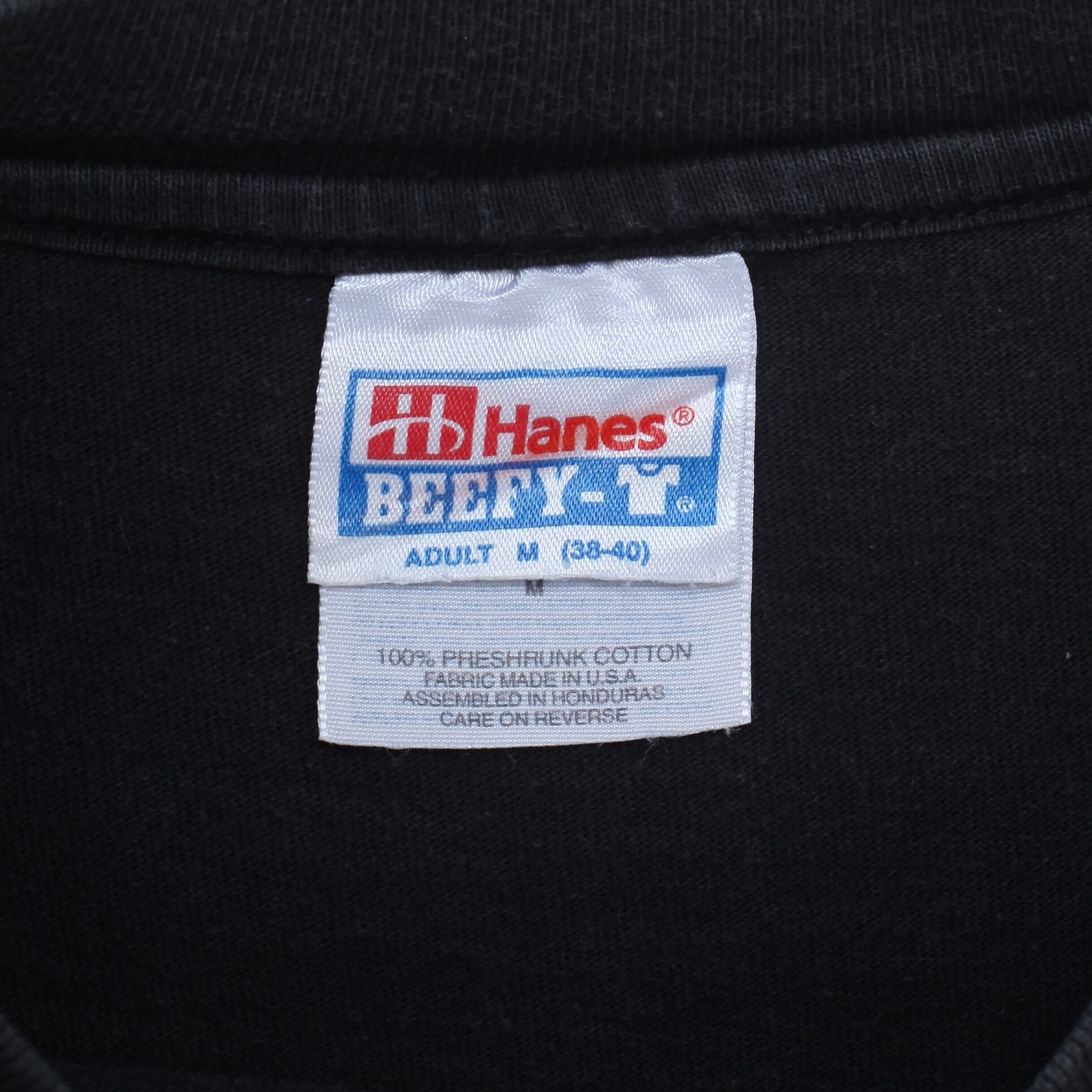 ボディはHANES BEEFY でコットンのしっかりしたヘビーウェイト生地、サイズはMですがややルーズよりなフィット感でユニセックスでのご案内です!
