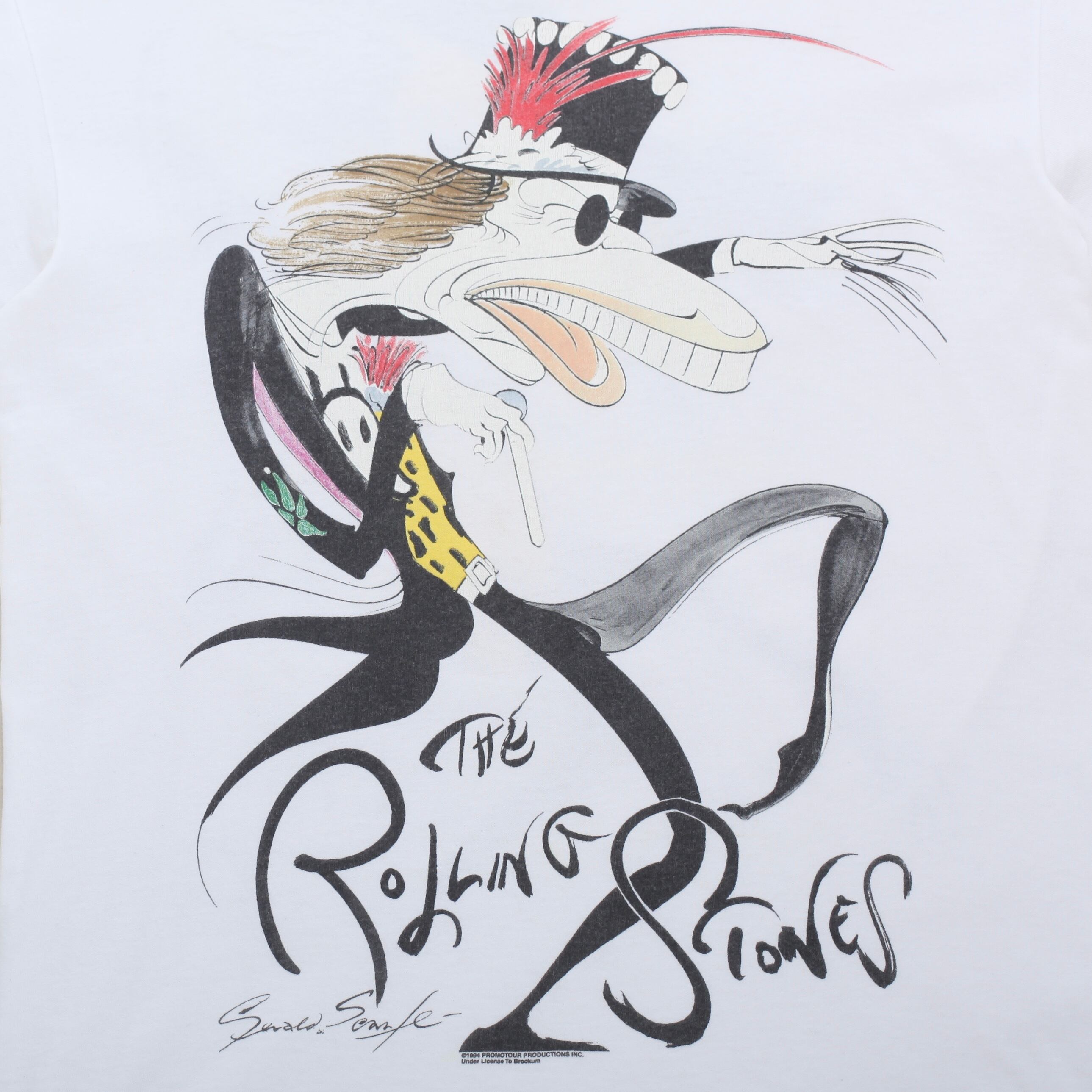 数あるツアーTシャツの中でもこちらはユーモアかつユニークなデザインで、ミック・ジャガー、キース・リチャーズ、ロン・ウッド、チャーリー・ワッツが独特なタッチで描かれています。